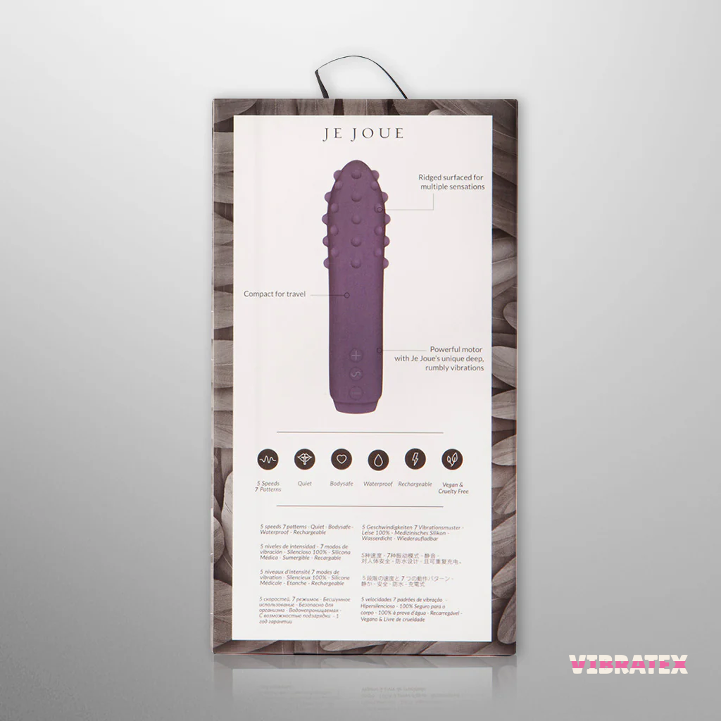 Use Duet to stimulate external pleasure points such as the clitoris, nipples, and thigh. And if you want to explore further, Duet is the perfect partner for gentle, shallow penetration play with its deeply rich vibrations. With its silky soft, body safe medical grade silicone, Duet feels great to touch and even better to experience. Let Je Joue’s famous rumbly motors pamper your body deeper, giving you a richer, more pleasurable intimate experience. Using the 5 different speeds and 7 patterns try out different intensities, pressure, and pulsations. Experiment with what works best for your body and go with it. Try out the different surfaces, both rounded and smooth as well as intensities, and go with what feels good for you. Keep rotating and adding pressure to where you feel sensations, increasing pleasure and build-up.